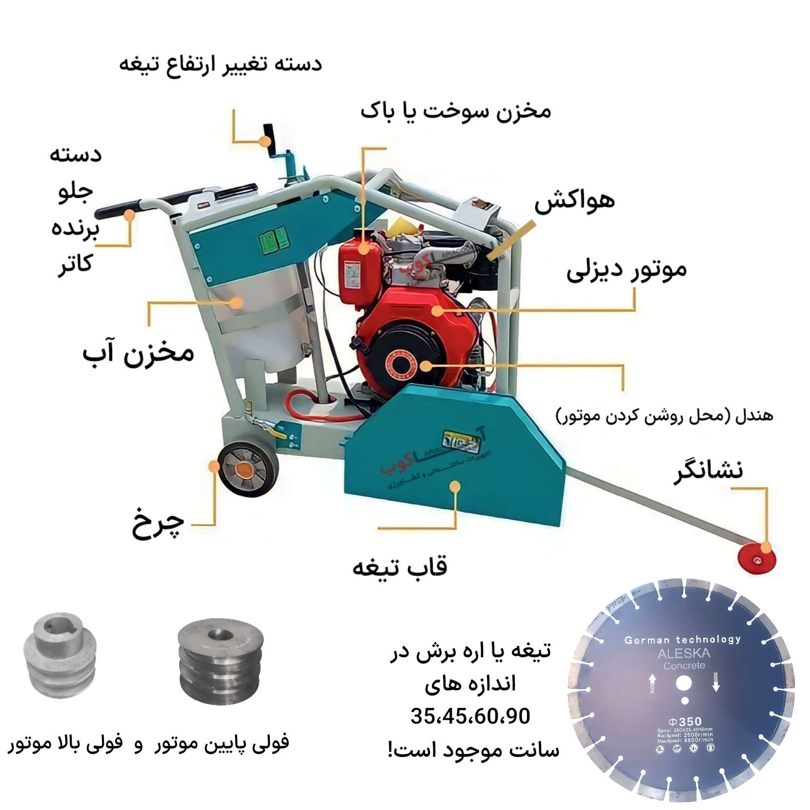 کاتر با تیغه بتن بُر بدون موتور = 17/000/000 تومان (شاسی+تیغه 35 سانت + فولی کاتر+ تسمه + پیچ و مهره)